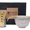 The set is complete with a bamboo whisk and spoon, essential for preparing the perfect matcha.