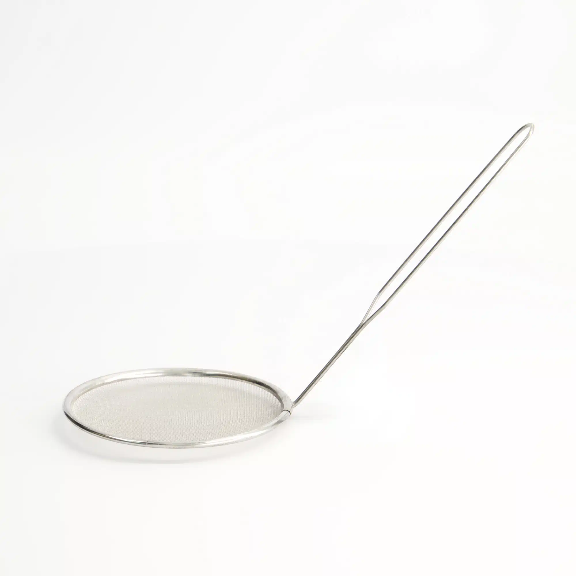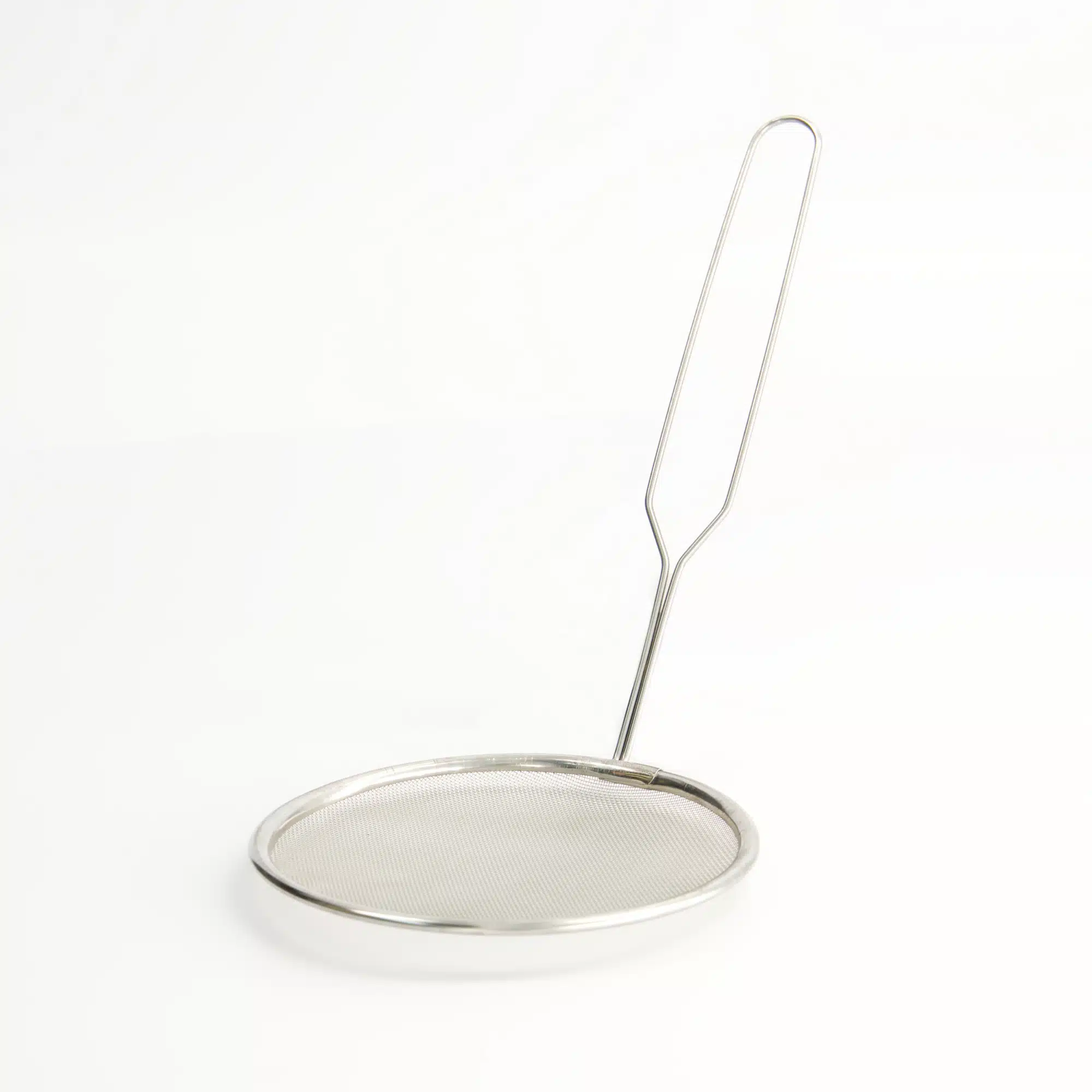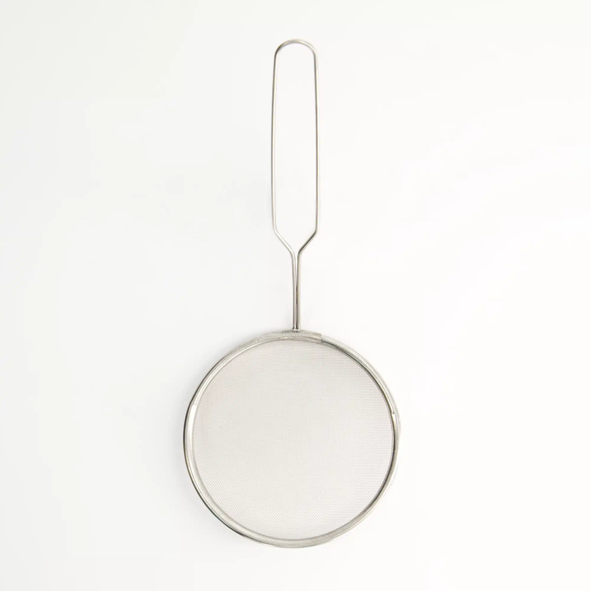 A convenient stainless steel kitchen strainer for various straining and filtering tasks.