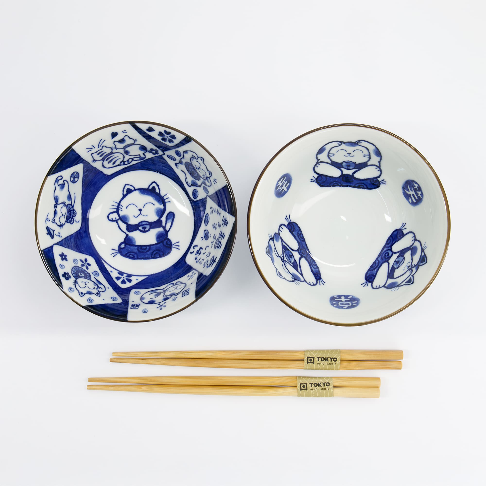 Tokyo Design Studio – Kawaii – Tayo Bowl Giftset 2pcs with Chopsticks – Cat – 14.9×6.7cm – 500ml – 3rd variant