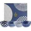 The design features traditional Japanese patterns in a timeless blue and white color scheme, creating a serene and harmonious look on the table.